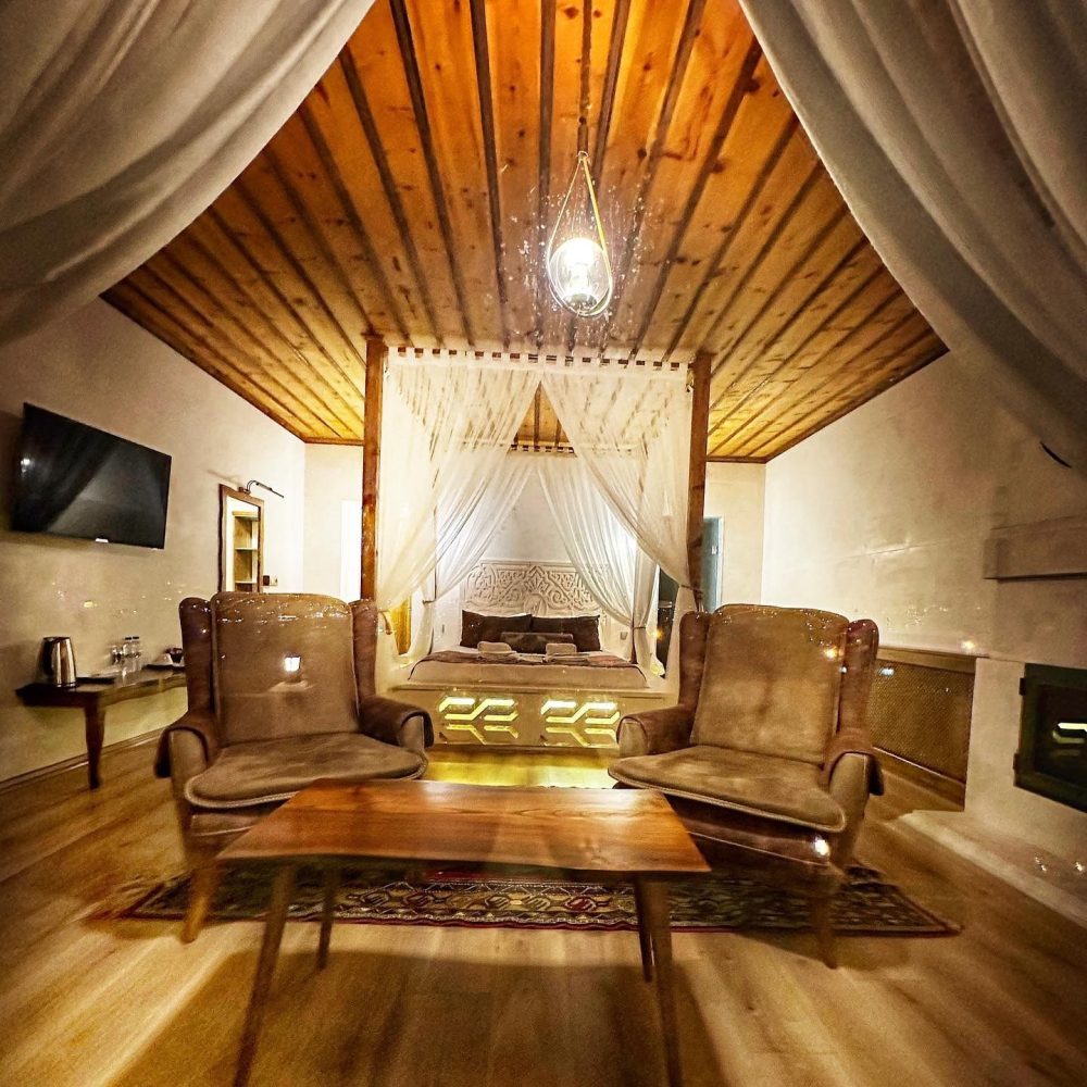 JAKUZİLİ KİNG SUİT ODAMIZ HOTELİMİZ ÜST KATINDA YER ALMAKTADIR. KENDİNE AİT BALKON VE TERASI MEVCUTTUR. JAKUZİLİ VE ŞÖMİNELİDİR.